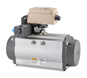 Application: Piston actuator for butterfl y valves, ball valves and other final control elements with rotary closure members. Particularly suitable for high process requirements in chemical plants.